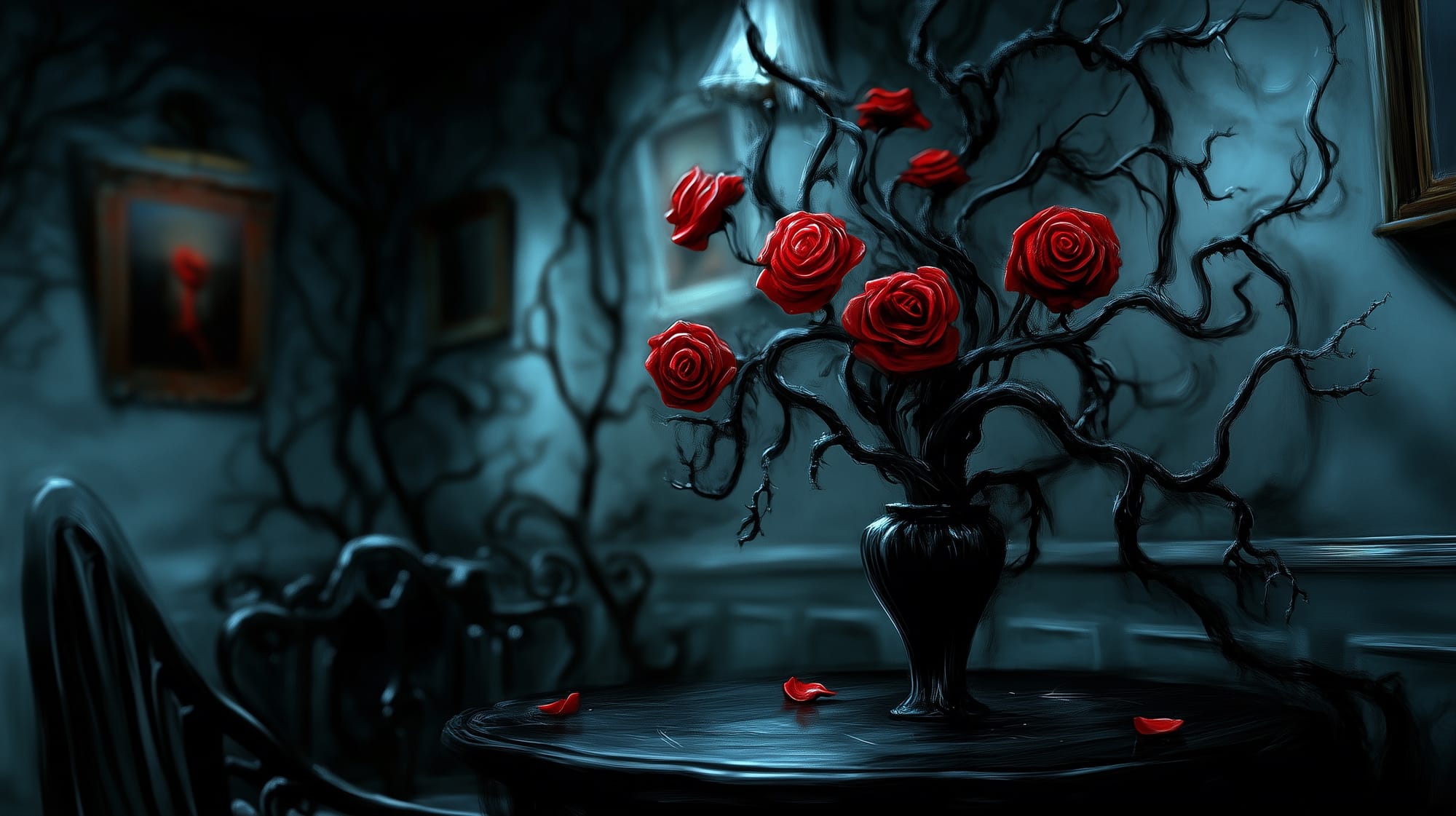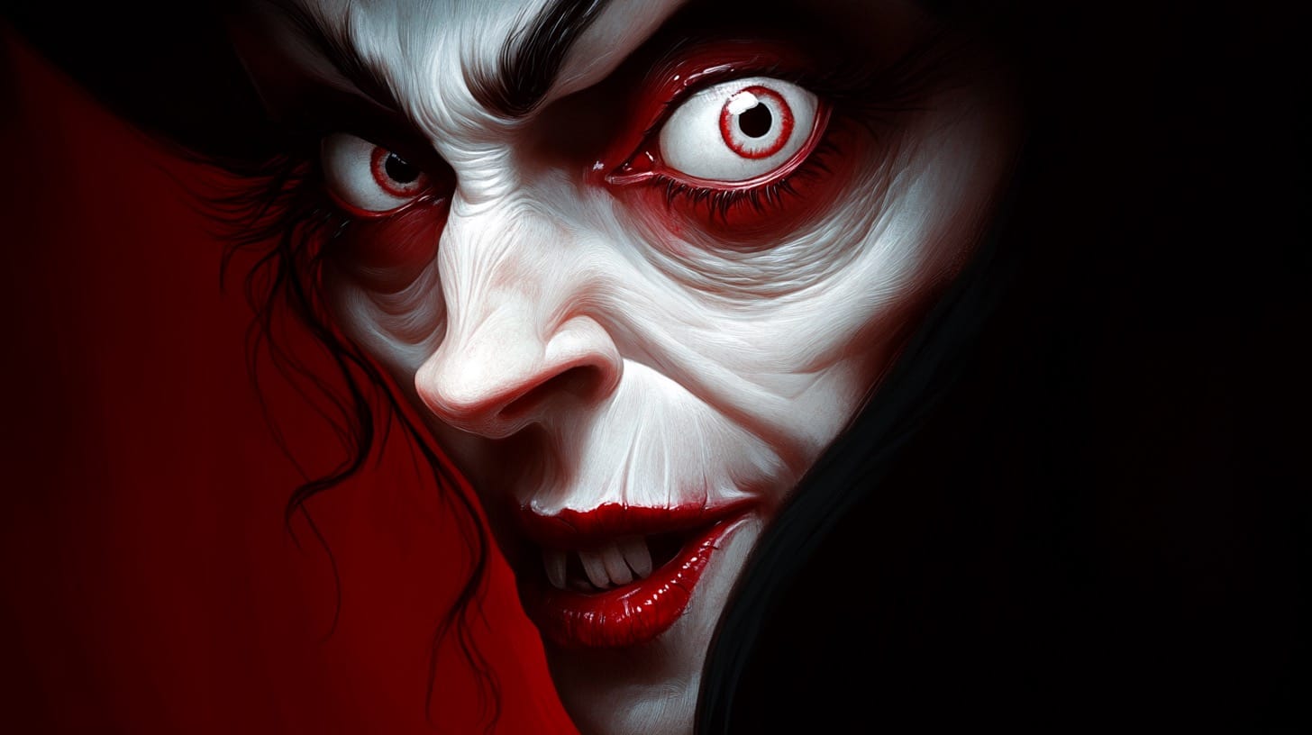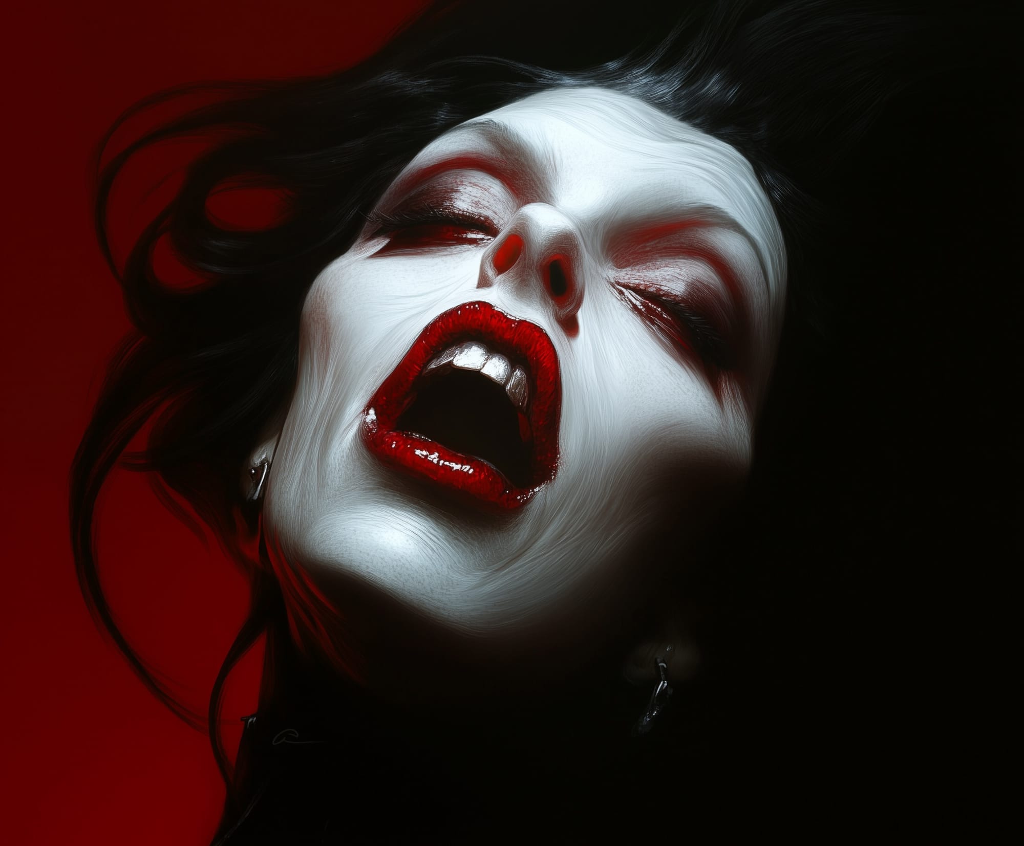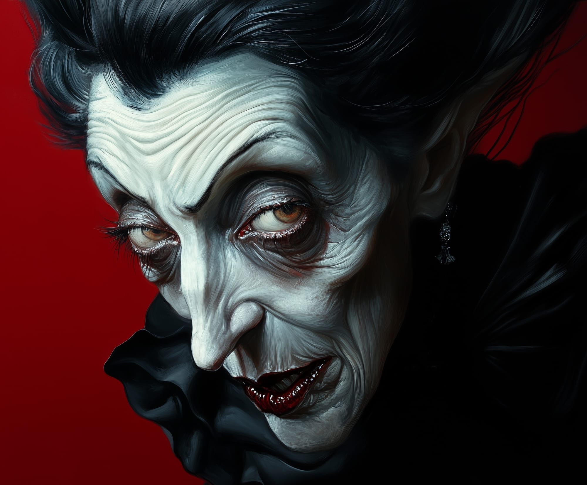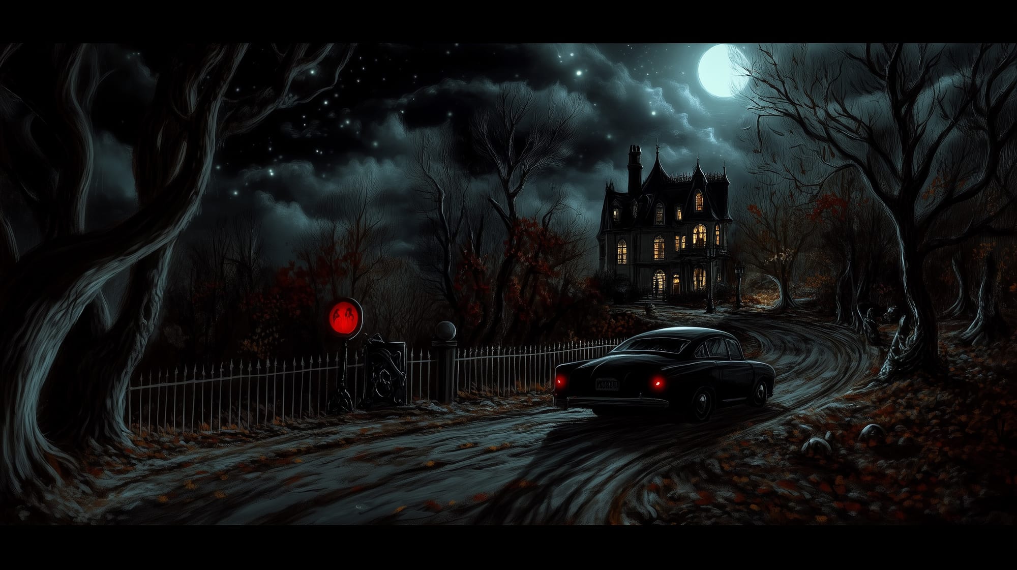 The Van Vamp mansion exists in a Hollywood that never quite left its golden age. Crimson walls absorb secrets while black-and-white checkered floors create visual rhythms that disorient and mesmerize. Time moves differently here.