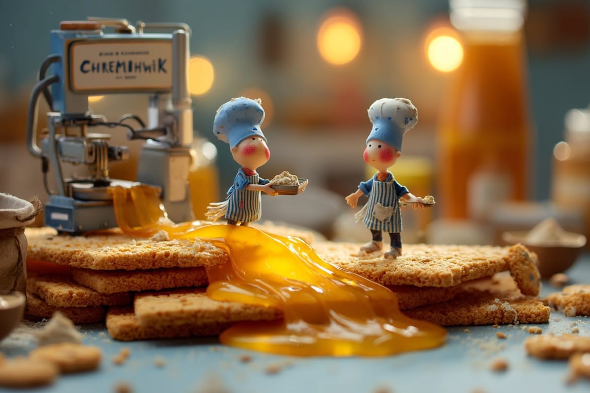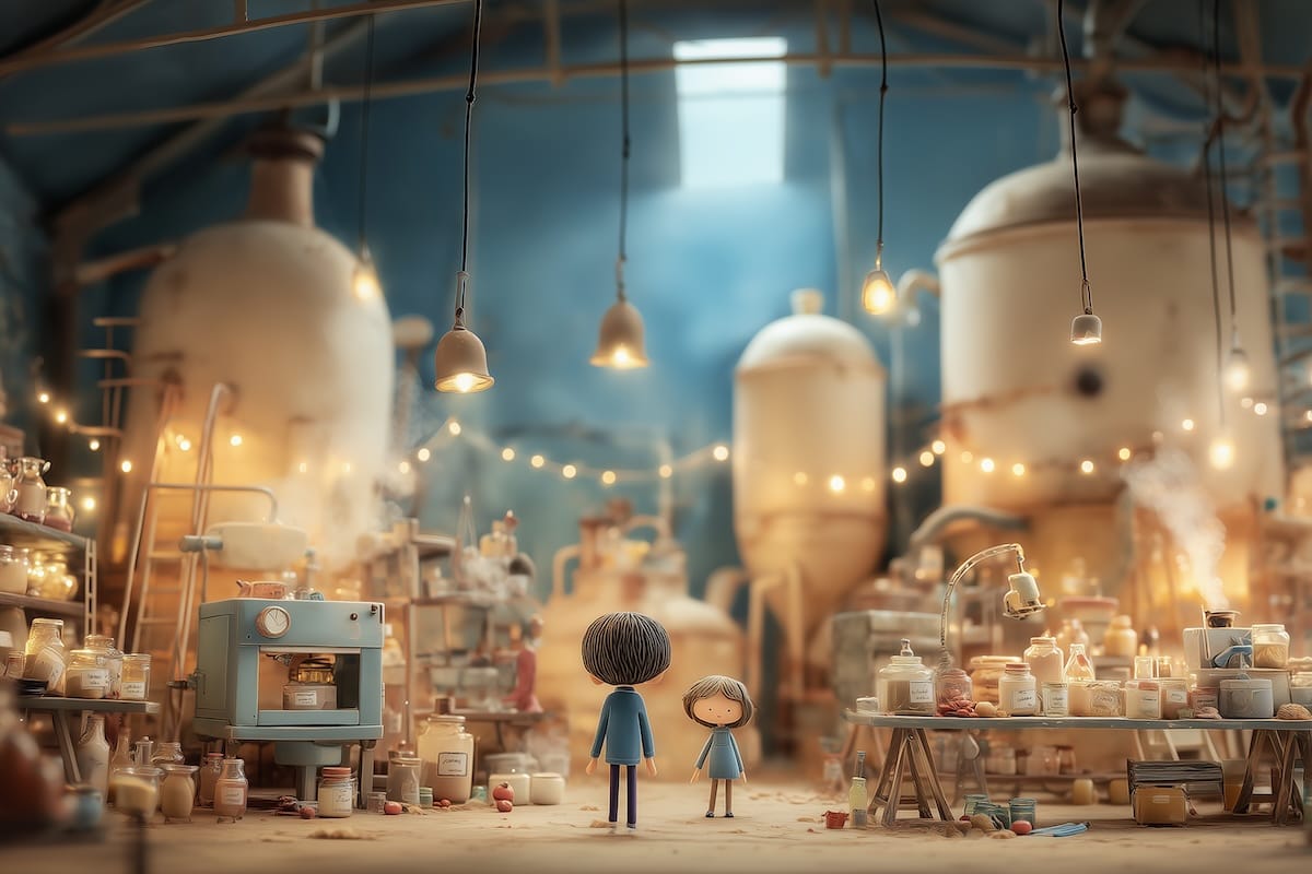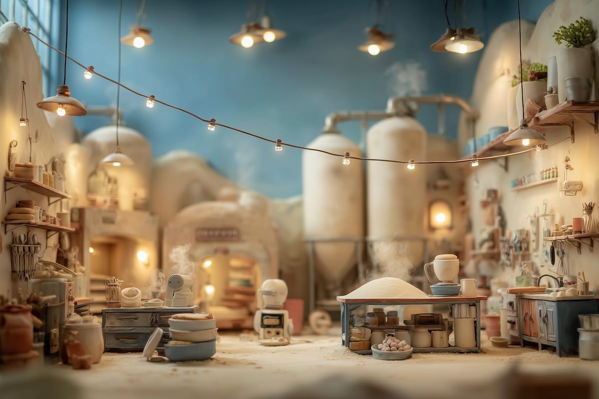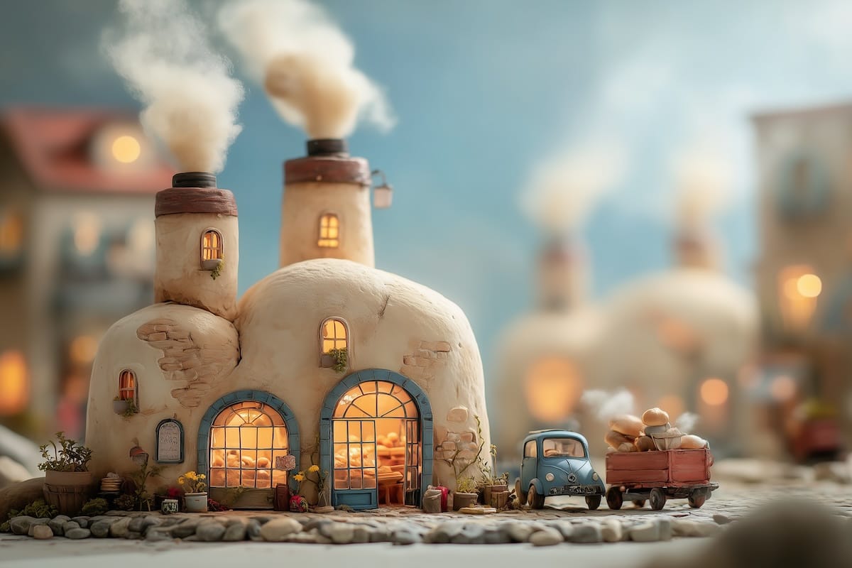 In the industrial heart of Custard Cove, the bakeries run day and night. Smokestacks puff clouds of flour into the sky. Delivery trucks idle outside arched windows glowing warm from the ovens inside.